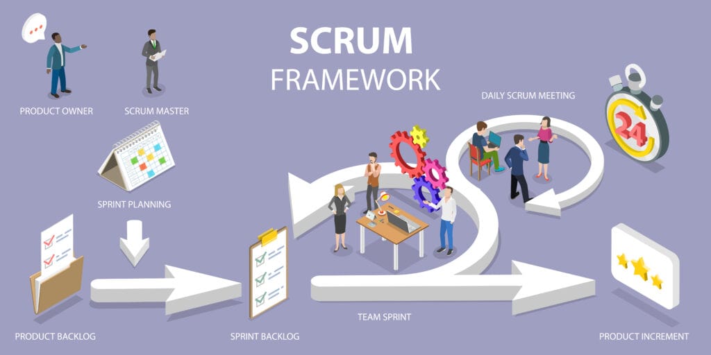 Scrum refers to a straightforward structure used by companies, corporations, or people in terms of behaviors that focus on Agile. It divides large, complicated projects into smaller components, each of which finishes within a certain period called a “sprint.”